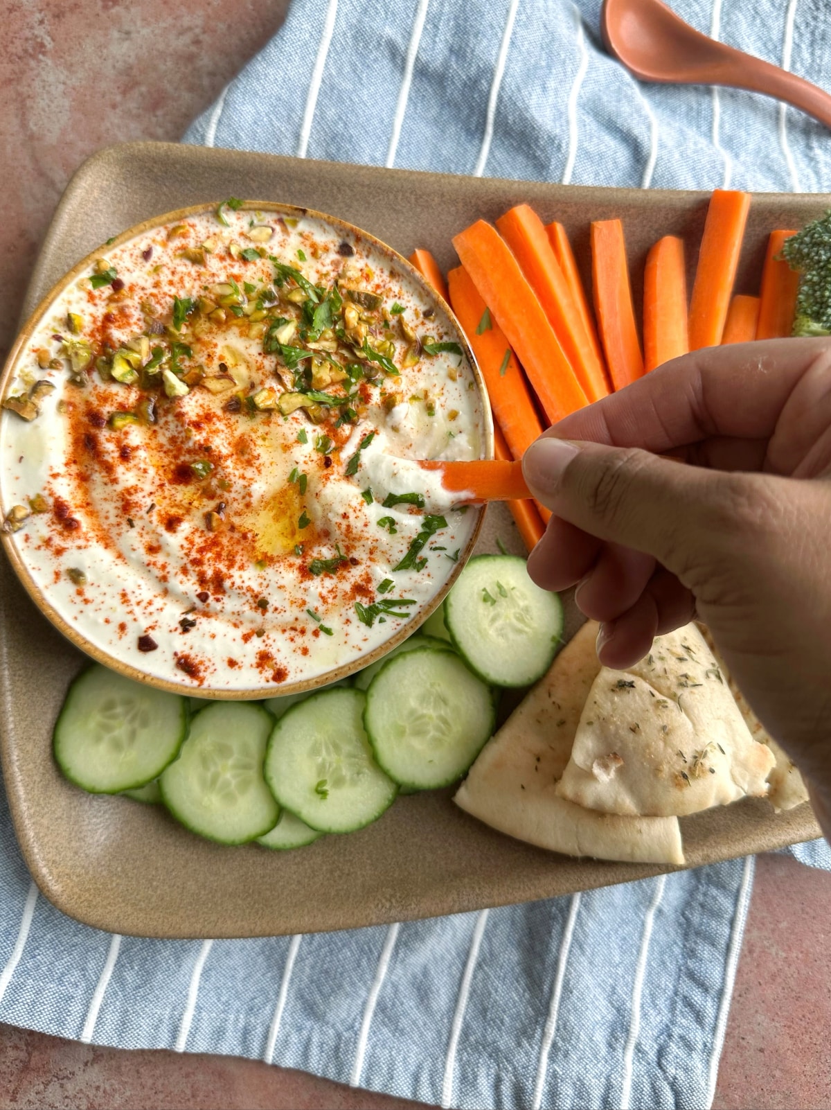 Accompaniments: Any type of bread works with this dip - try spreading on my Homemade Garlic Naan or fresh sourdough for a treat! You could also serve tons of fresh vegetables alongside for dipping like carrots, broccoli, cauliflower, sliced bell peppers, or cucumbers.